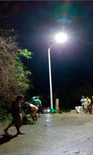這是位于越南國家最新的一個項目。該項目選擇的是20瓦飛越二體化太陽能路燈,安裝在5.5米的燈桿上面。該款太陽能路燈具有專利外觀(外觀專利號:201730612718.0)以及模塊化的集成設(shè)計,安裝維護都很便捷。同時采用了專利透鏡、蝙蝠翼型配光,使光線的分布更加均勻。
