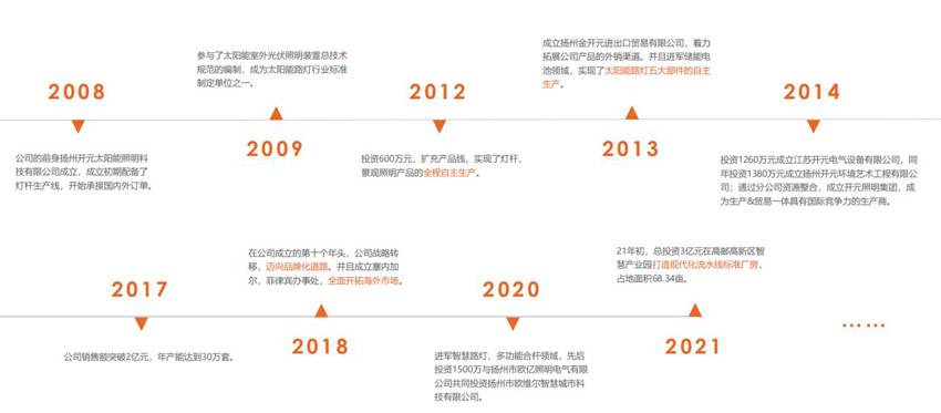 “做好每一盞燈,成為最專業(yè)的太陽(yáng)能路燈制造商”,作為一家專業(yè)生產(chǎn)太陽(yáng)能路燈的公司,開(kāi)元太陽(yáng)能照明目前擁有太陽(yáng)能電池板、鋰電池、太陽(yáng)能控制器、LED燈具、燈桿等專業(yè)生產(chǎn)車(chē)間80000平方米,并自主研發(fā)了太陽(yáng)能路燈控制系統(tǒng),實(shí)現(xiàn)了太陽(yáng)能路燈部件的完全自產(chǎn)。目前已有近100萬(wàn)套產(chǎn)品使用于世界各地,經(jīng)受住了不同使用環(huán)境的檢驗(yàn)。